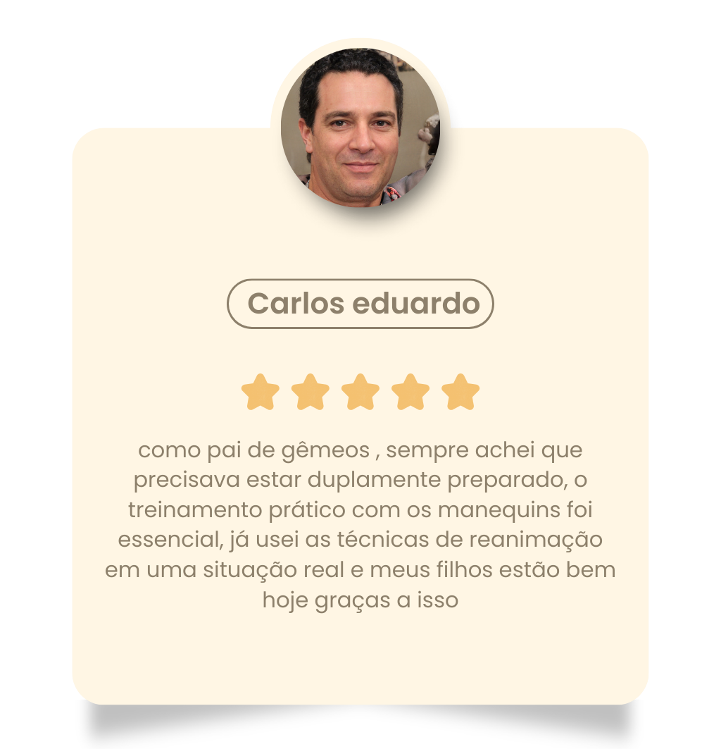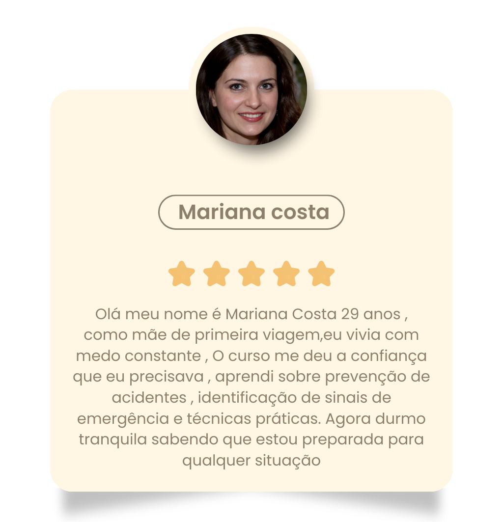 Criamos este treinamento porque acreditamos que cuidar de um bebê vai muito além do amor — envolve preparo, informação e segurança nos momentos mais delicados.Ao longo da nossa jornada, percebemos que muitos pais e cuidadores vivem com medo de não saber como agir diante de uma emergência. Engasgos, quedas, febre alta, acidentes domésticos… situações que ninguém espera, mas que podem acontecer a qualquer momento.Foi por isso que desenvolvemos o Treinamento de Primeiros Socorros para Bebês: para levar orientação clara, prática e acessível a quem mais precisa — pais, mães, avós e cuidadores que desejam proteger a vida de um bebê com responsabilidade e confiança.Nossa missão é simples e profunda:capacitar você para agir com calma e segurança quando cada segundo importa.Com este treinamento, queremos estar ao seu lado, ensinando passo a passo como agir em situações reais do dia a dia, para que o medo dê lugar à tranquilidade e à certeza de que você está preparado.Porque amar é cuidar.E estar preparado é uma das maiores formas de amor.