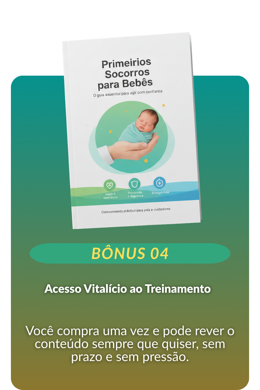 O Treinamento de Primeiros Socorros para Bebês oferece uma visão completa, prática e acessível sobre como agir em situações de emergência com recém-nascidos e bebês.